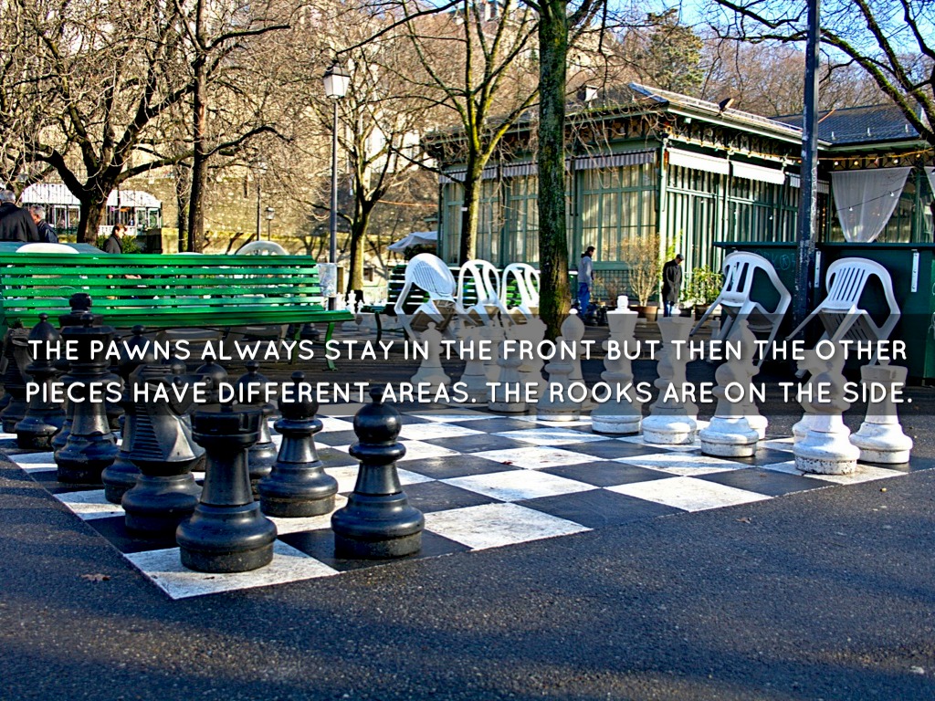 THE PAWNS ALWAYS STAY IN THE FRONT BUT THEN THE OTHER