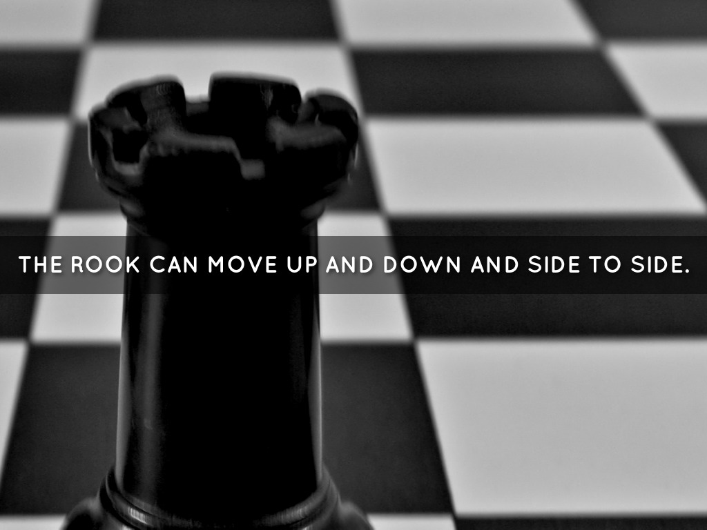 THE ROOK CAN MOVE UP AND DOWN AND SIDE TO SIDE.