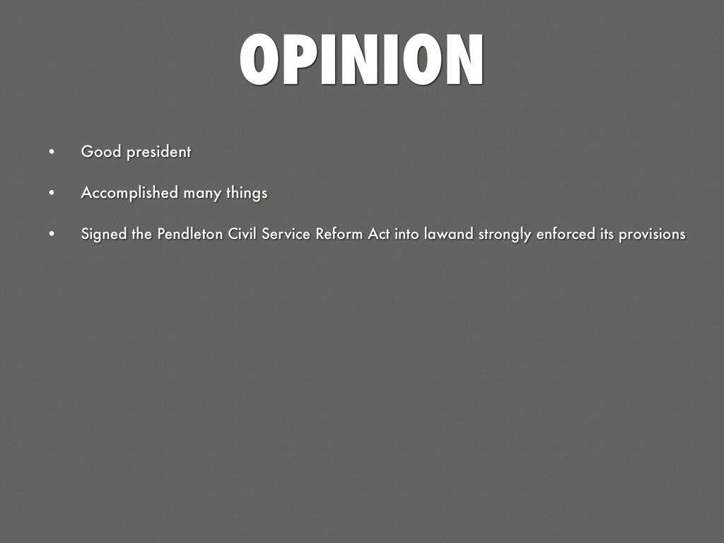 Signed the Pendleton Civil Service Reform Act into lawand strongly enforced its provisions