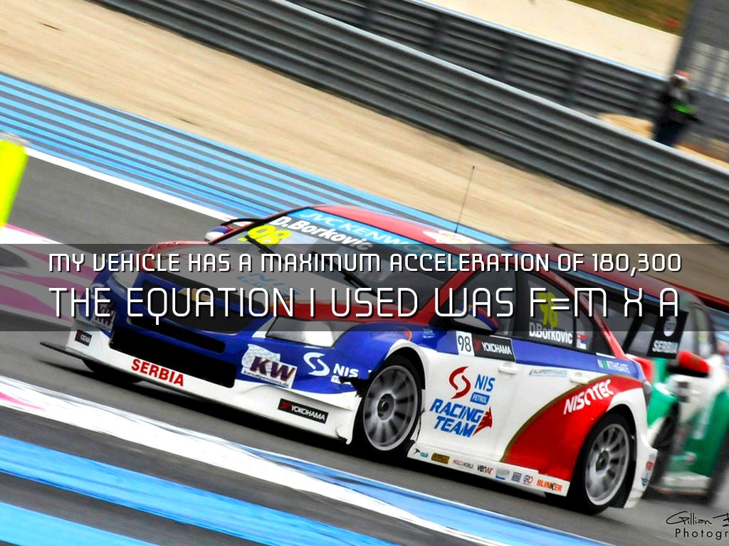 ALL THE FORCES OF THE VEHICLE ARE 180,300 ACCELERATION AND 30,050,000 FOR 10,000 NEWTON FORCE