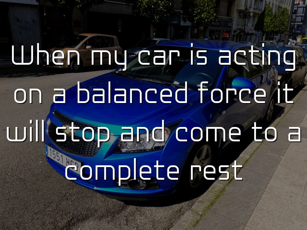 When my car is acting on a balanced force it will stop and come to a complete rest
