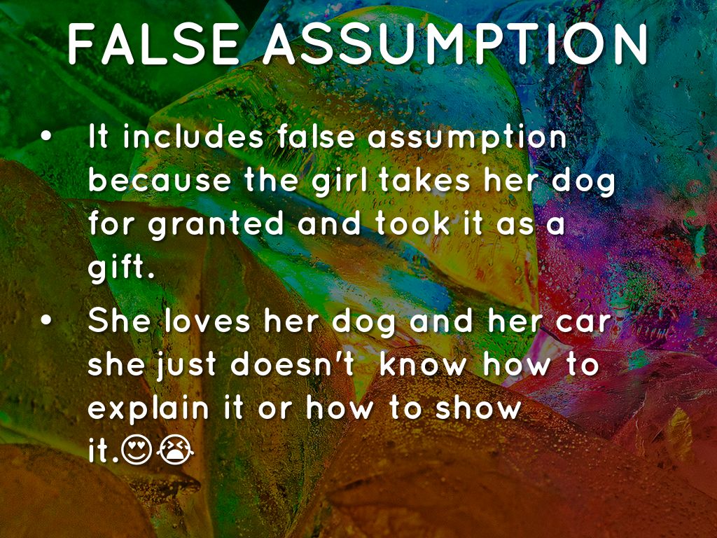 It includes false assumption because the girl takes her dog for granted and took it as a gift.