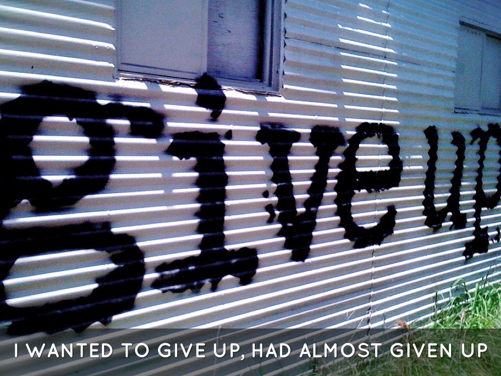 I WANTED TO GIVE UP, HAD ALMOST GIVEN UP