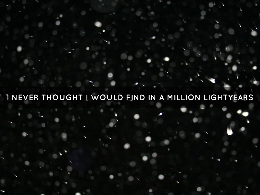 I NEVER THOUGHT I WOULD FIND IN A MILLION LIGHTYEARS