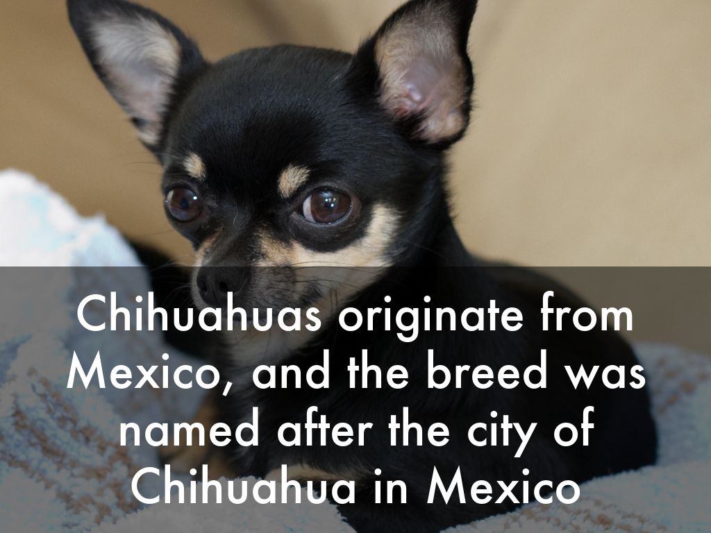 Chihuahuas originate from Mexico, and the breed was named after the city of Chihuahua in Mexico