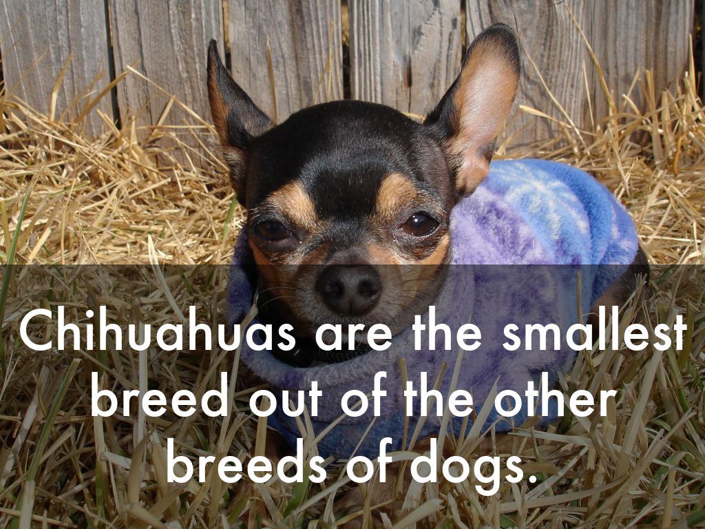 Chihuahuas are the smallest breed out of the other breeds of dogs.