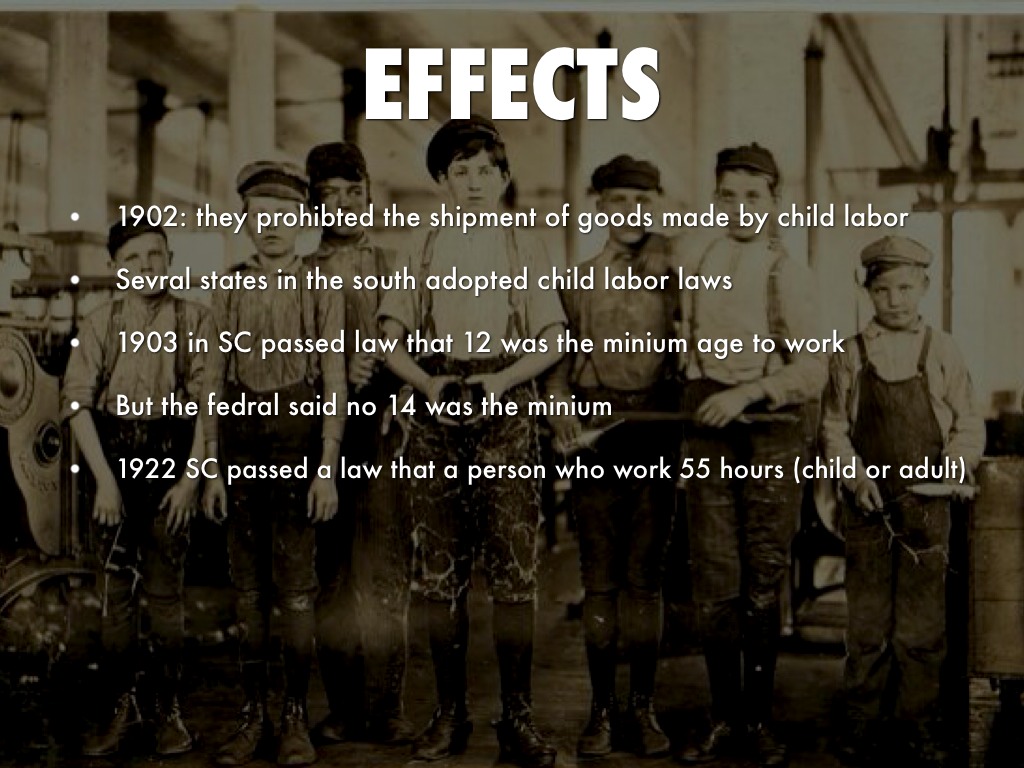 1922 SC passed a law that a person who work 55 hours (child or adult)