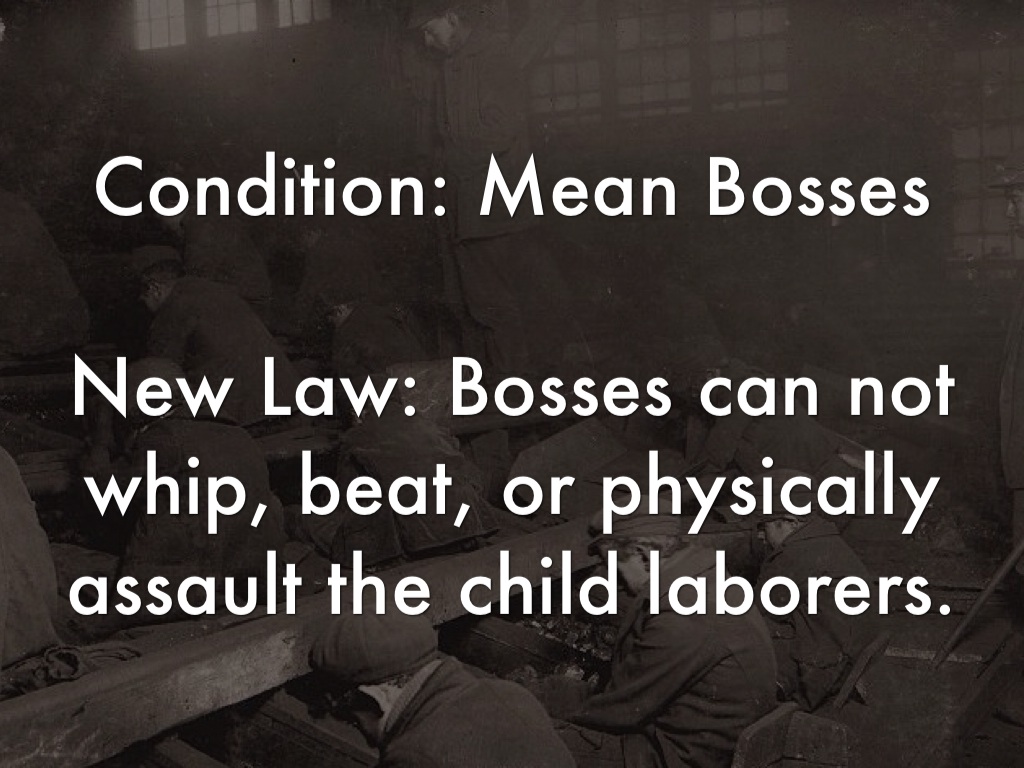 New Law: Bosses can not whip, beat, or physically assault the child laborers.