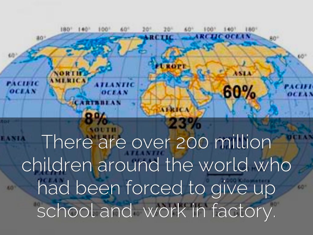 There are over 200 million children around the world who had been forced to give up school and work in factory.