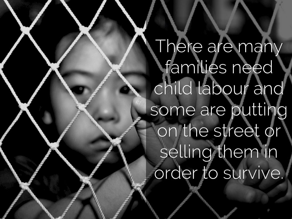 There are many families need child labour and some are putting on the street or selling them in order to survive.