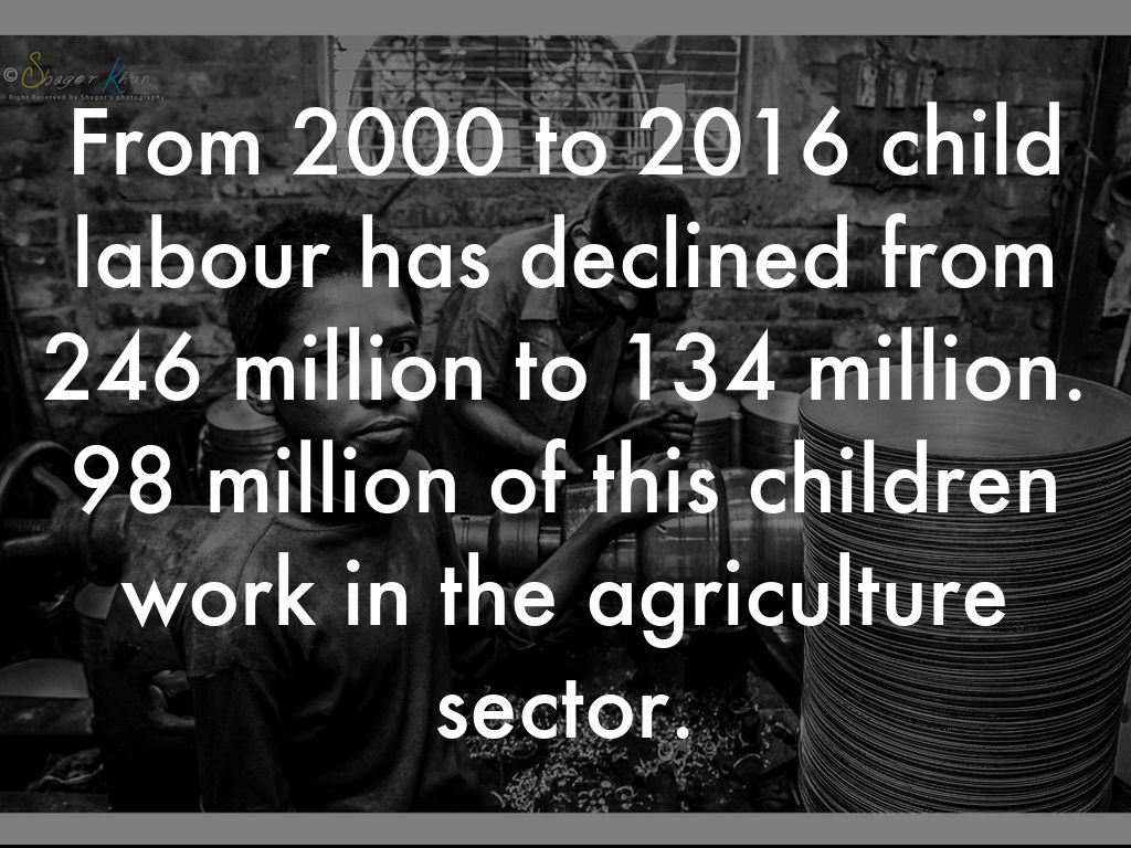 From 2000 to 2016 child labour has declined from 246 million to 134 million.