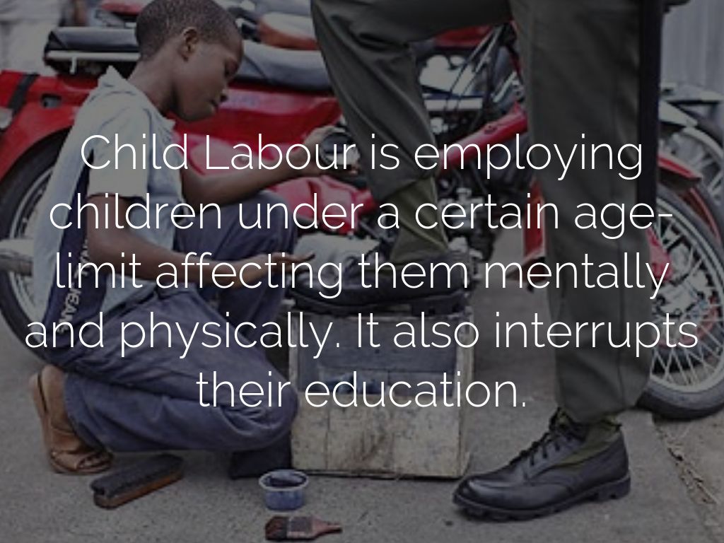 Child Labour is employing children under a certain age-limit affecting them mentally and physically. It also interrupts their education.