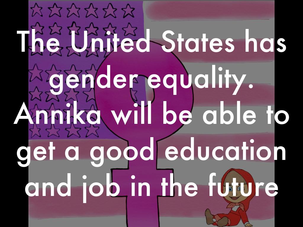 The United States has gender equality. Annika will be able to get a good education and job in the future