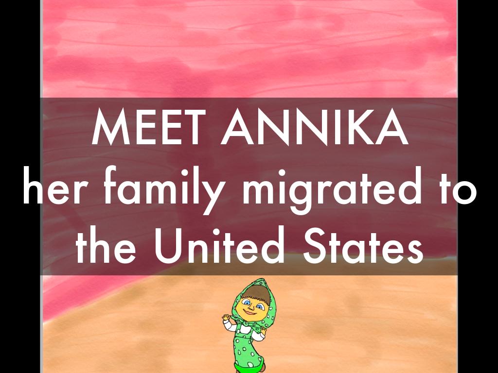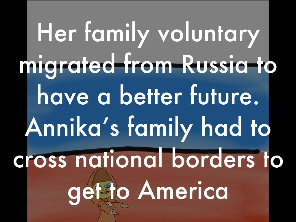 Her family voluntary migrated from Russia to have a better future. Annika’s family had to cross national borders to get to America