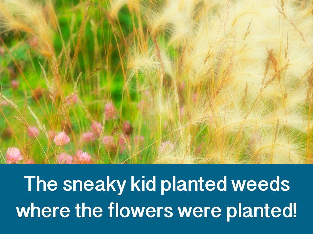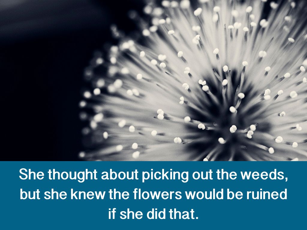 She thought about picking out the weeds, but she knew the flowers would be ruined if she did that.