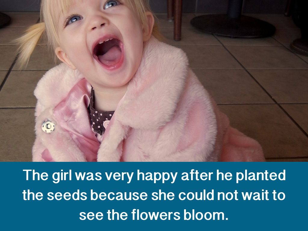 The girl was very happy after he planted the seeds because she could not wait to see the flowers bloom.