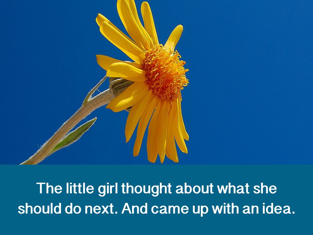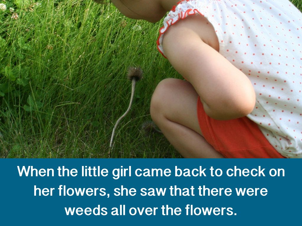 When the little girl came back to check on her flowers, she saw that there were weeds all over the flowers.