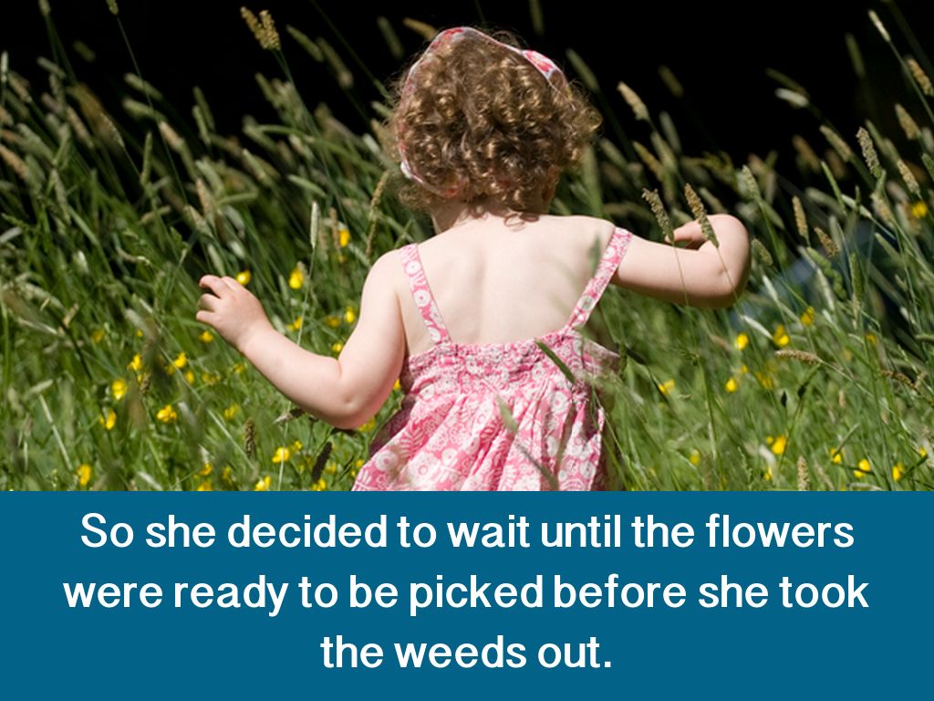 So she decided to wait until the flowers were ready to be picked before she took the weeds out.