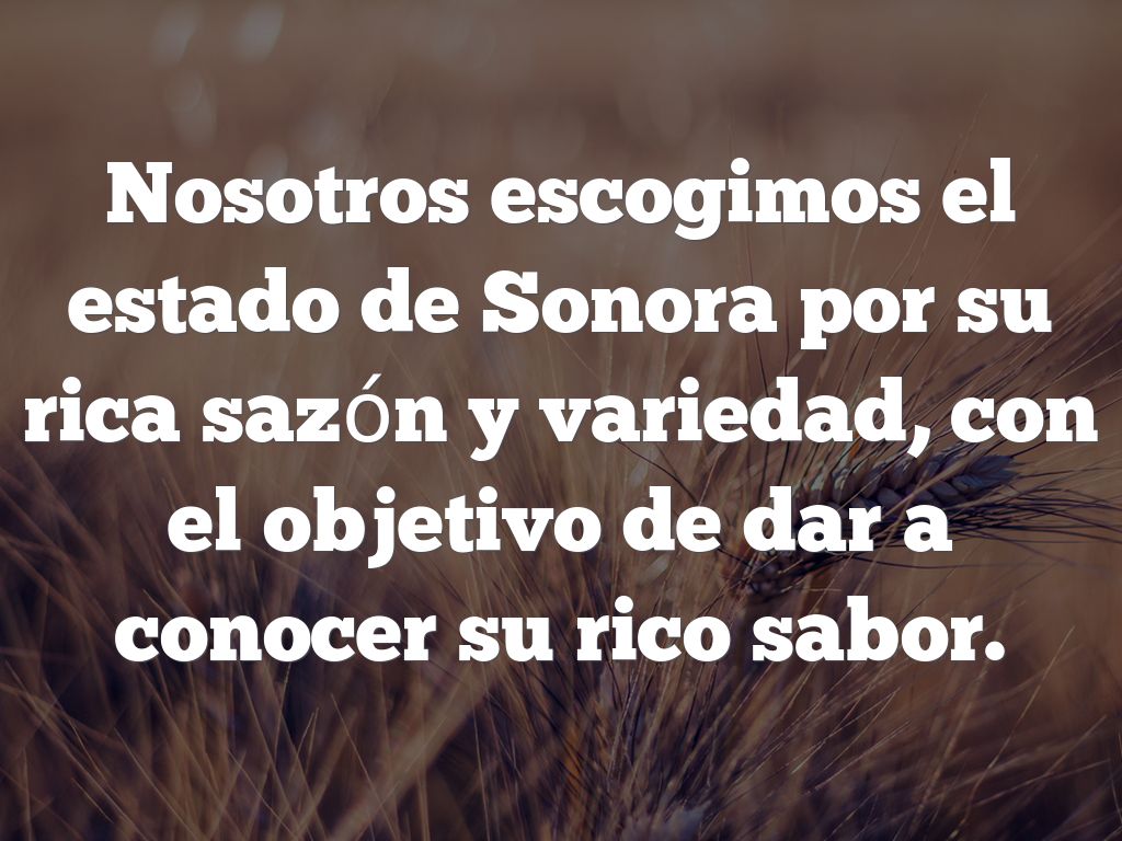 Nosotros escogimos el estado de Sonora por su rica sazón y variedad, con el objetivo de dar a conocer su rico sabor.
