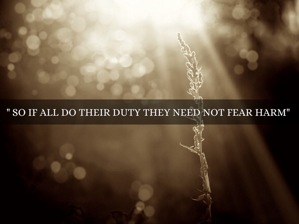 " SO IF ALL DO THEIR DUTY THEY NEED NOT FEAR HARM"