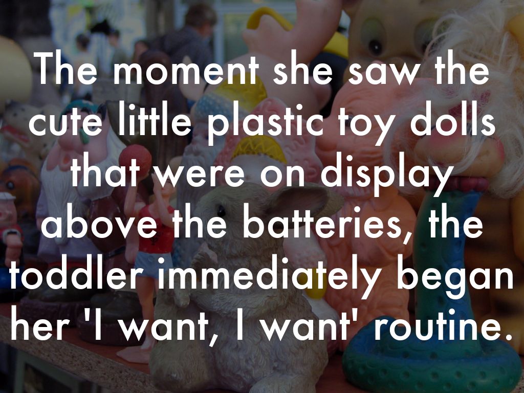 The moment she saw the cute little plastic toy dolls that were on display above the batteries, the toddler immediately began her 'I want, I want' routine.
