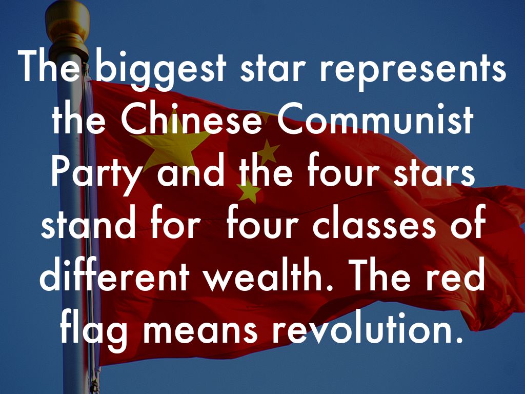 The biggest star represents the Chinese Communist Party and the four stars stand for four classes of different wealth. The red flag means revolution.