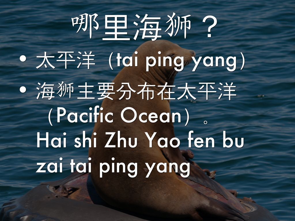 海狮主要分布在太平洋(Pacific Ocean)。 Hai shi Zhu Yao fen bu zai tai ping yang