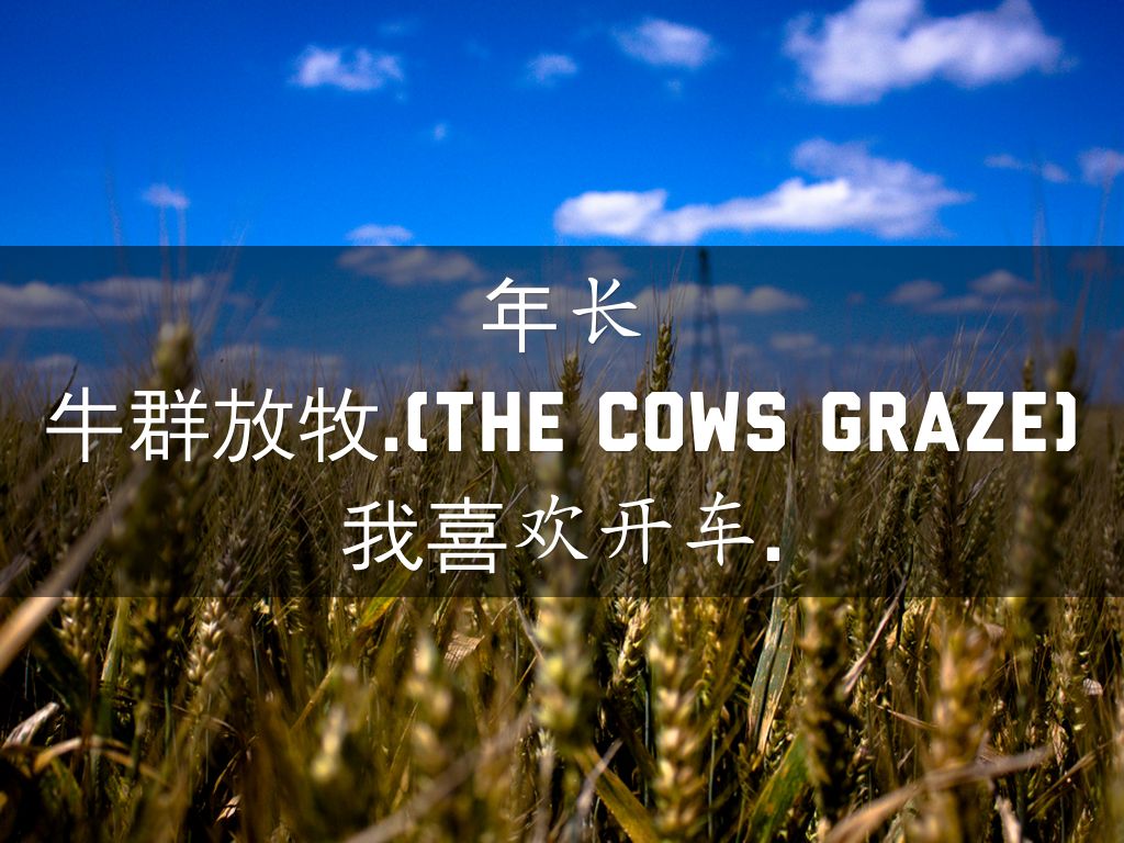 牛群放牧.(The cows graze)我喜欢开车.