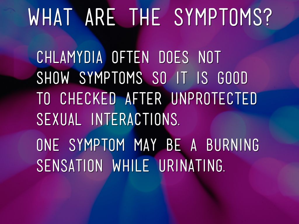 Chlamydia often does not show symptoms so it is good to checked after unprotected sexual interactions.