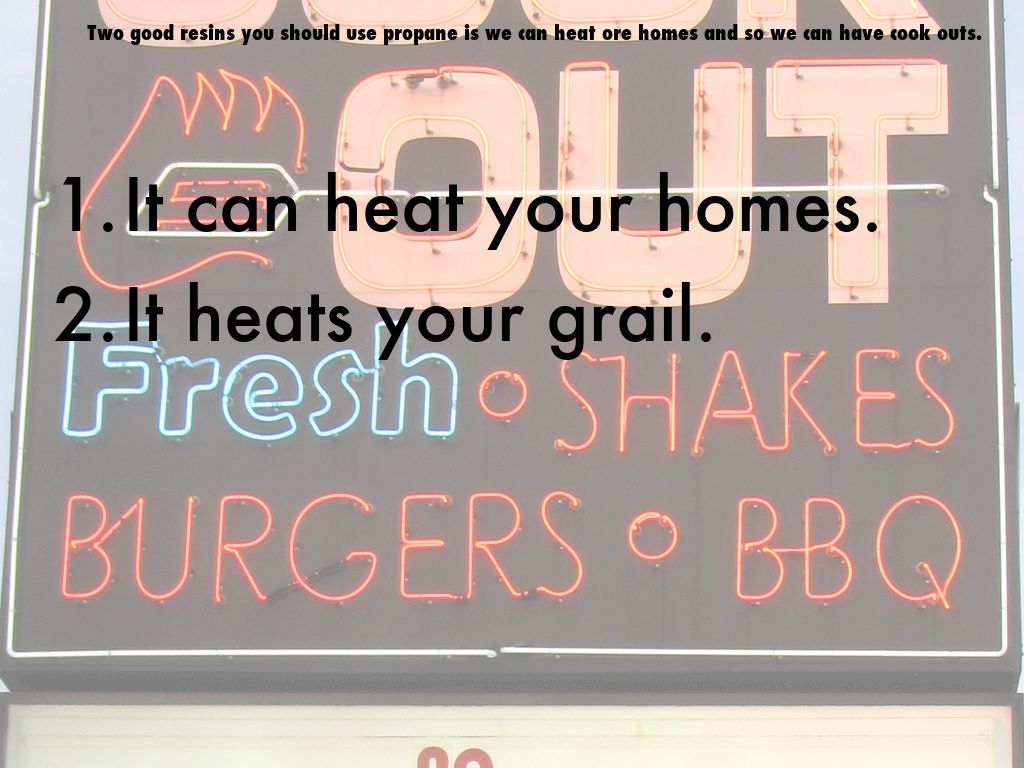 Two good resins you should use propane is we can heat ore homes and so we can have cook outs.