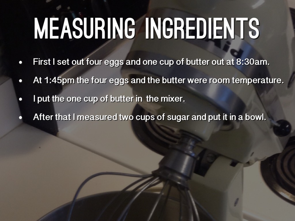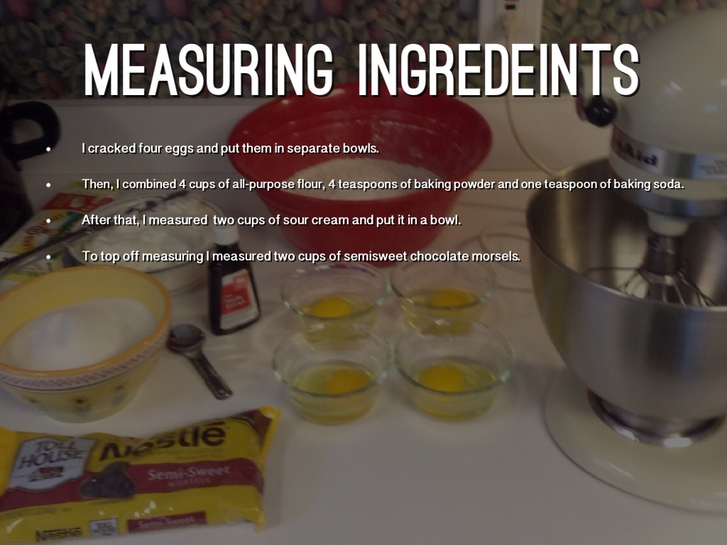 Then I combined the flour, baking powder and baking soda. Lastly, I added to creamed mixture alternately with sour cream
