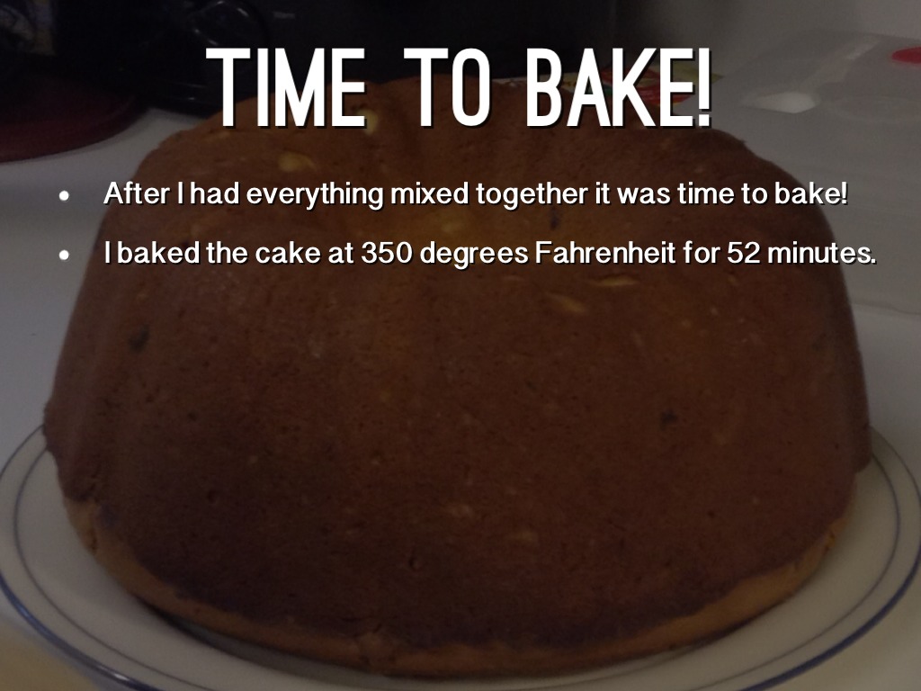 I baked the cake at 350 degrees Fahrenheit for 52 minutes.