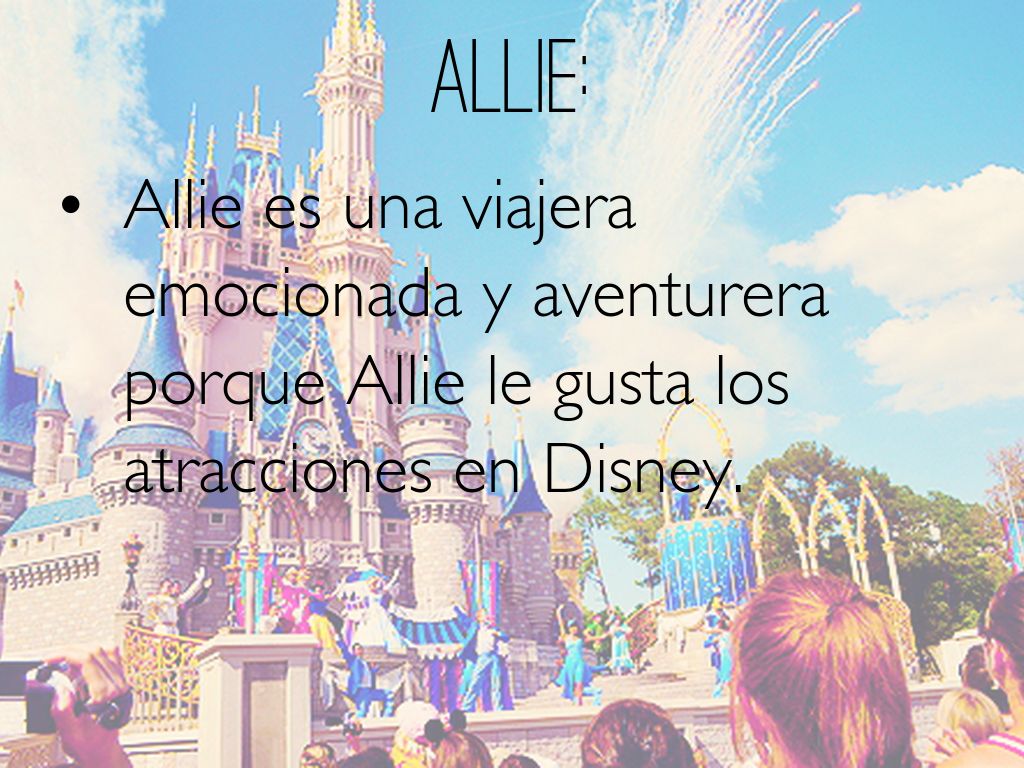 Allie es una viajera emocionada y aventurera porque Allie le gusta los atracciones en Disney.