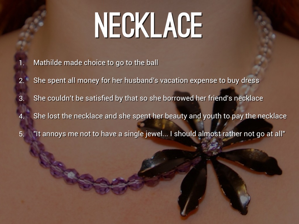 She lost the necklace and she spent her beauty and youth to pay the necklace