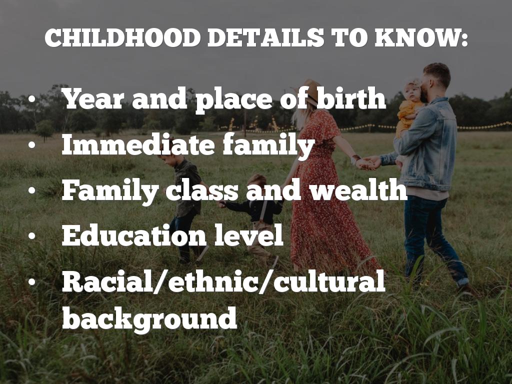 For each one of these, you should also know the extent to which you accept these facts about your background or struggle to overcome them. In other words, are you proud of your past, or ashamed of it?