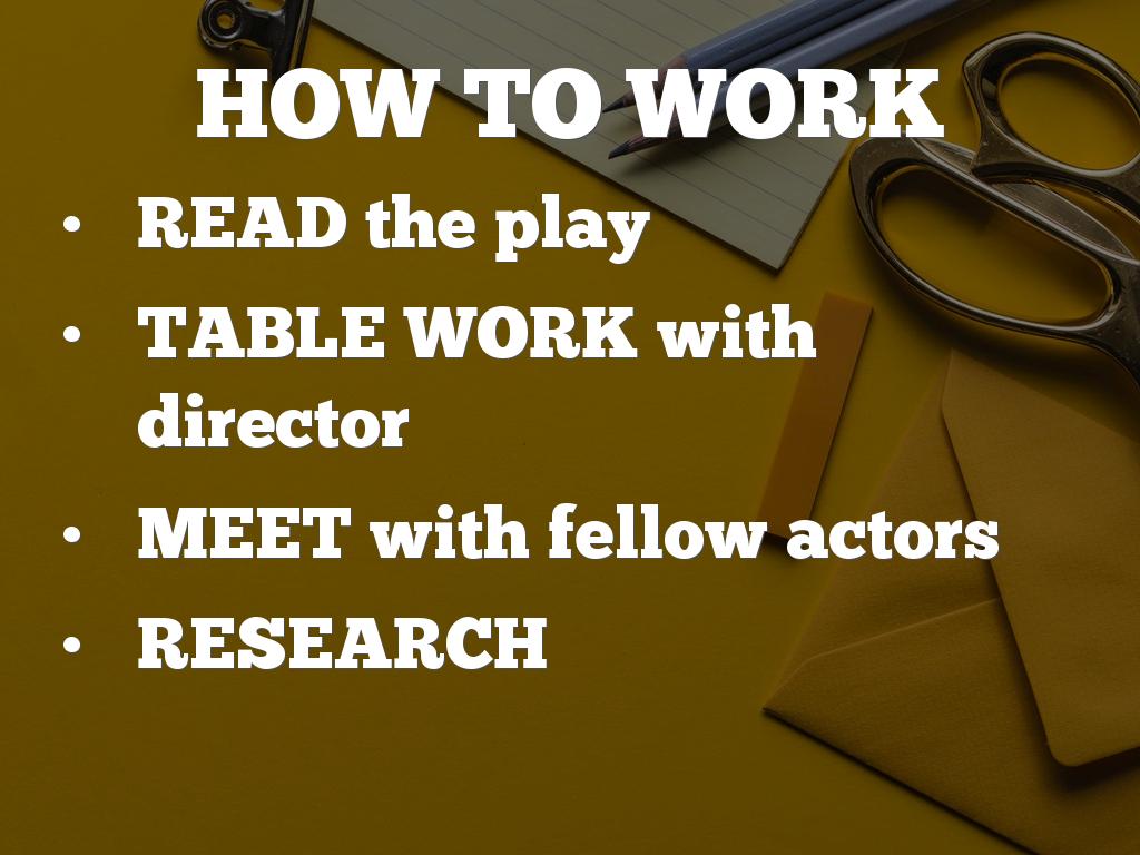 Start with some of the basics of childhood experience and remember to always answer these questions in the first person (I, me, my, our, us) so we get used to the idea of the character being you when you are onstage, rather than some other person that you play.
