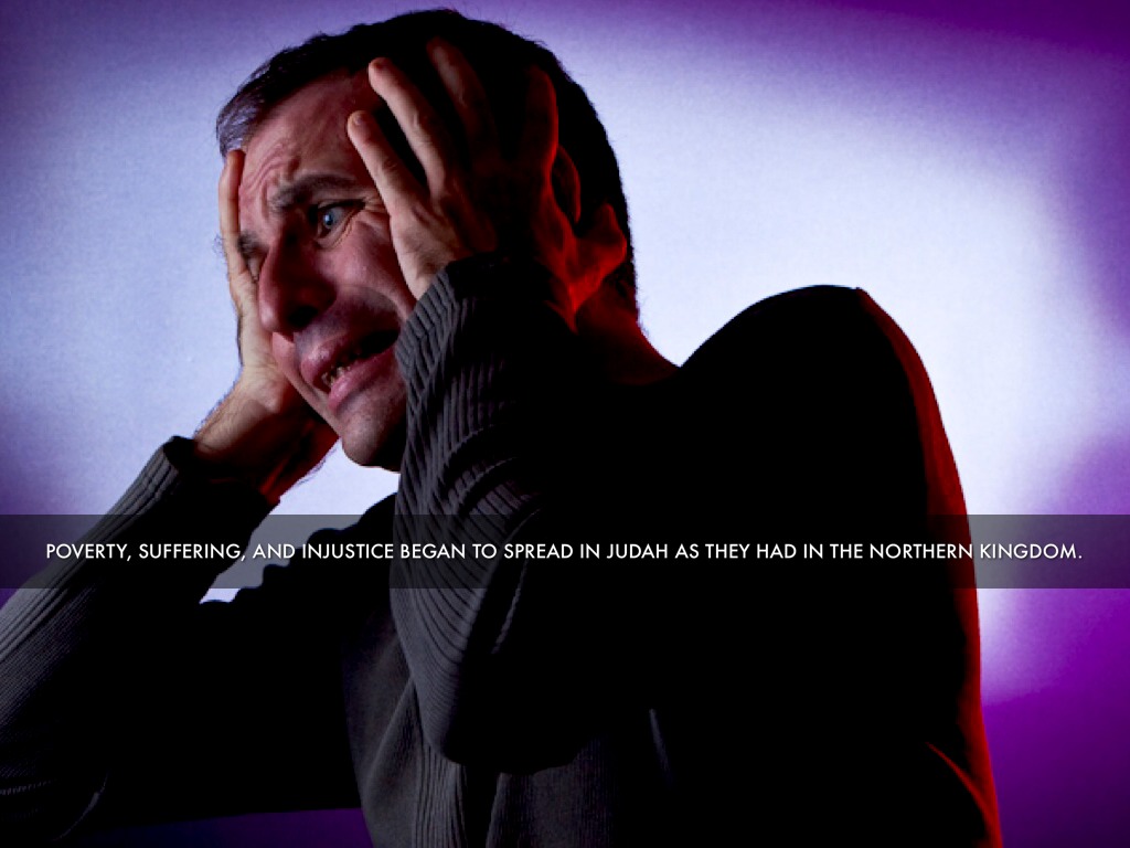 POVERTY, SUFFERING, AND INJUSTICE BEGAN TO SPREAD IN JUDAH AS THEY HAD IN THE NORTHERN KINGDOM.