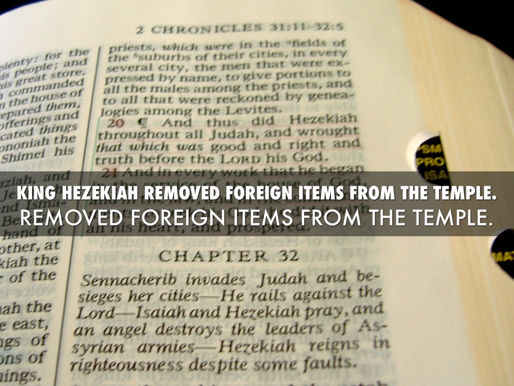 REMOVED FOREIGN ITEMS FROM THE TEMPLE.