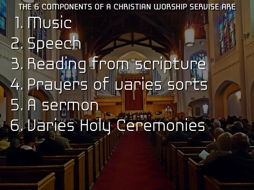 THE 6 COMPONENTS OF A CHRISTIAN WORSHIP SERVISE ARE