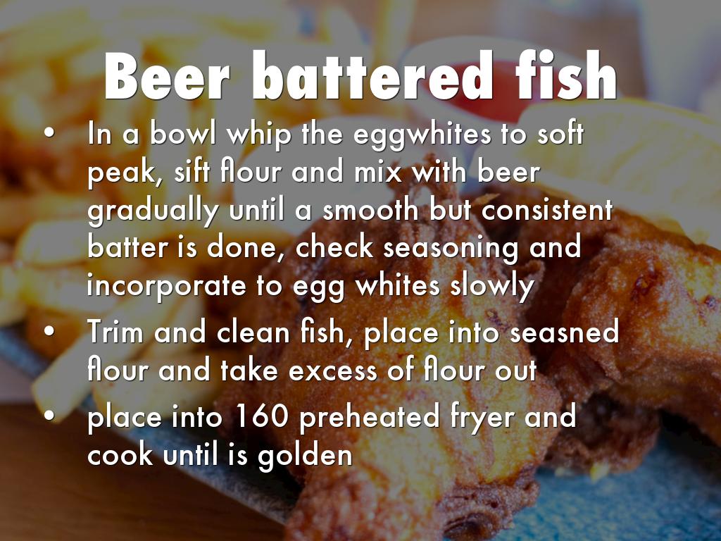 In a bowl whip the eggwhites to soft peak, sift flour and mix with beer gradually until a smooth but consistent batter is done, check seasoning and incorporate to egg whites slowly