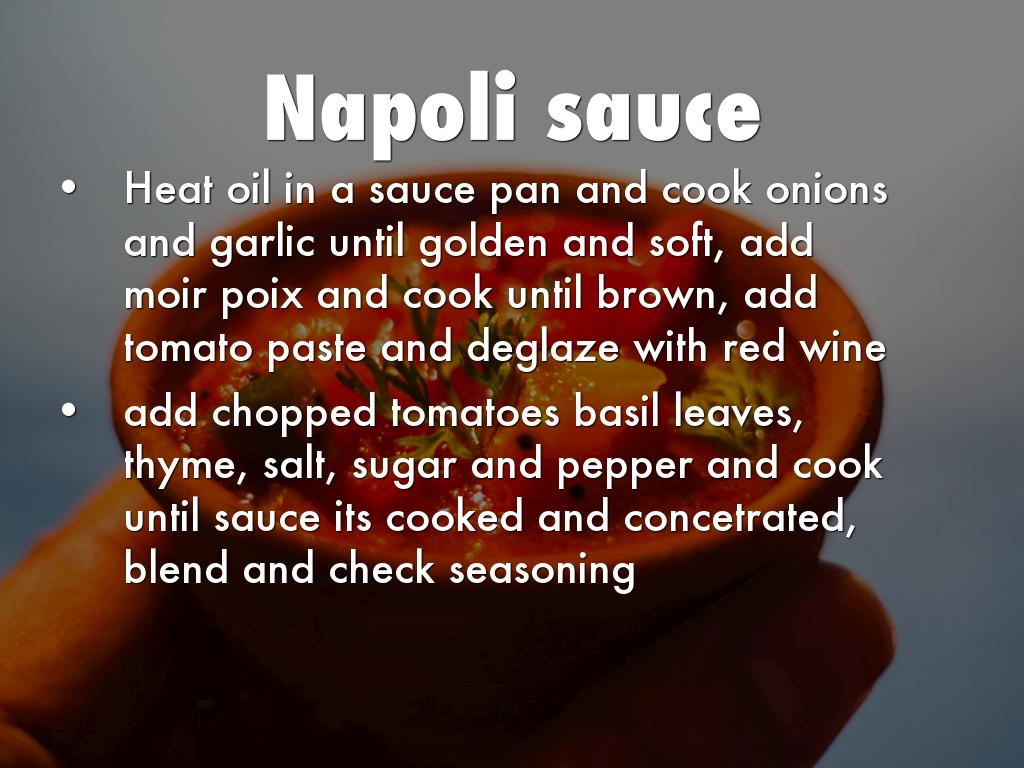 Heat oil in a sauce pan and cook onions and garlic until golden and soft, add moir poix and cook until brown, add tomato paste and deglaze with red wine