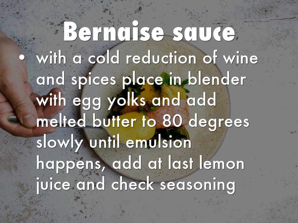 with a cold reduction of wine and spices place in blender with egg yolks and add melted butter to 80 degrees slowly until emulsion happens, add at last lemon juice and check seasoning