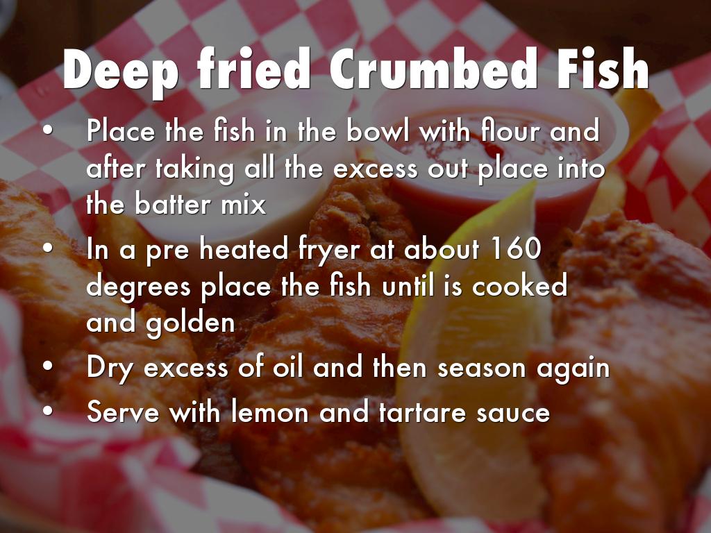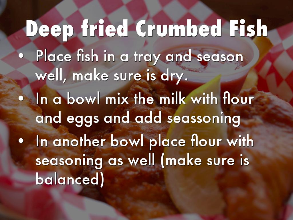 Trim and clean fish, place into seasned flour and take excess of flour out