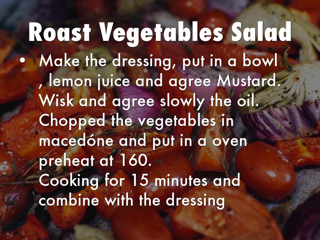 Chopped the vegetables in macedóne and put in a oven preheat at 160.