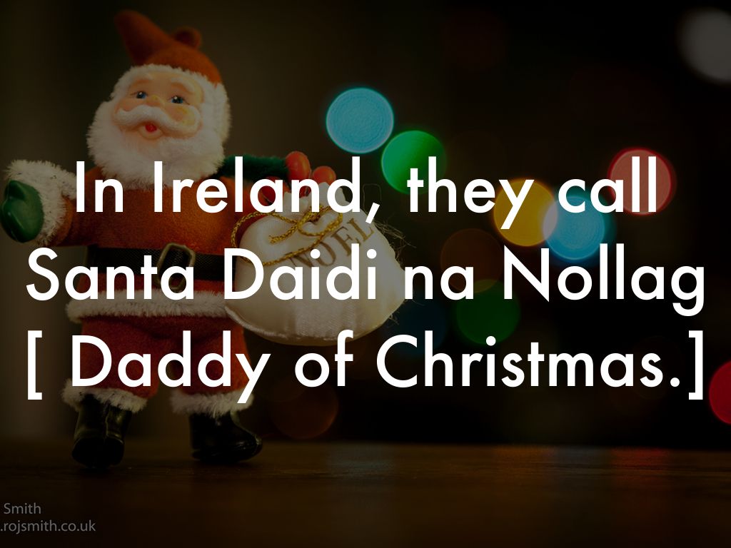 In Ireland, they call Santa Daidi na Nollag [ Daddy of Christmas.]