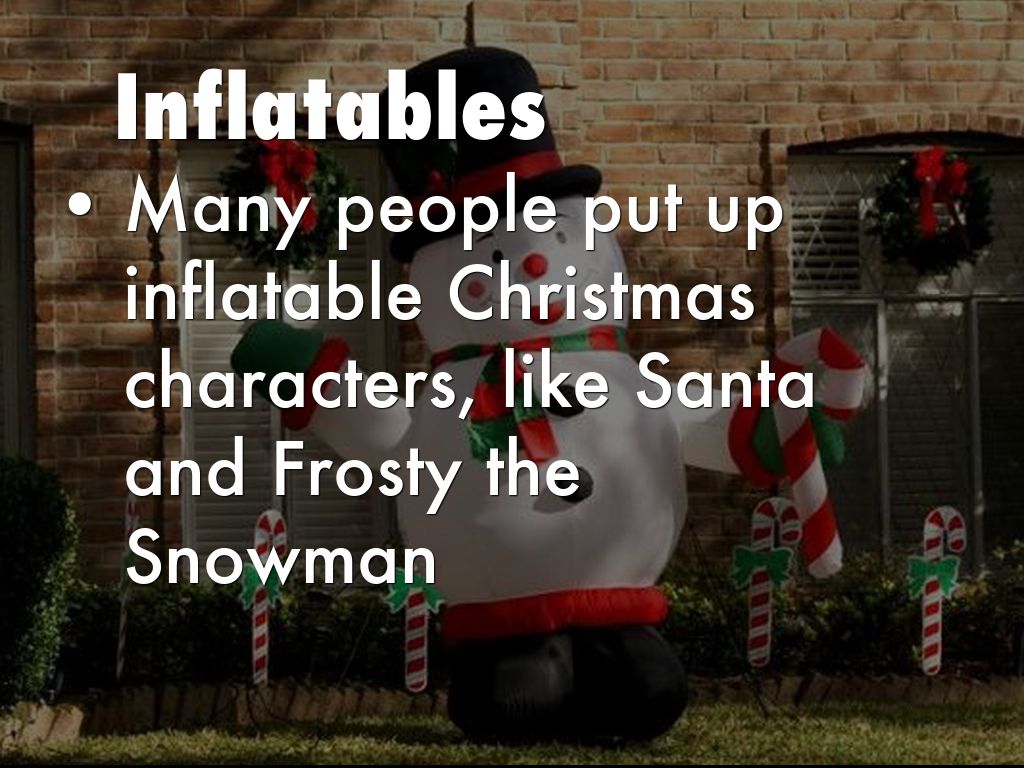 • Many people put up inflatable Christmas characters, like Santa and Frosty the Snowman