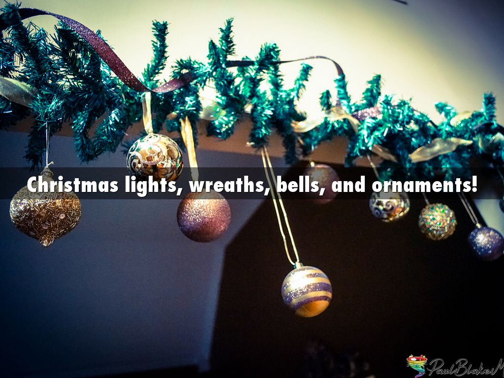 Christmas lights, wreaths, bells, and ornaments!