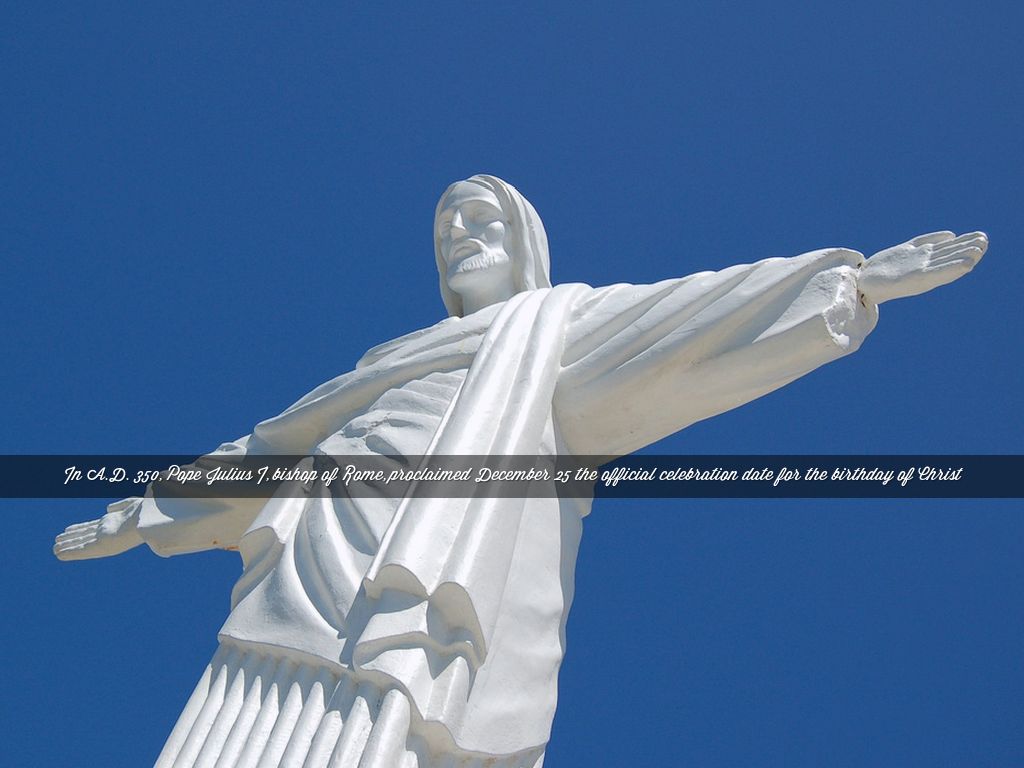 In A.D. 350, Pope Julius I, bishop of Rome, proclaimed December 25 the official celebration date for the birthday of Christ