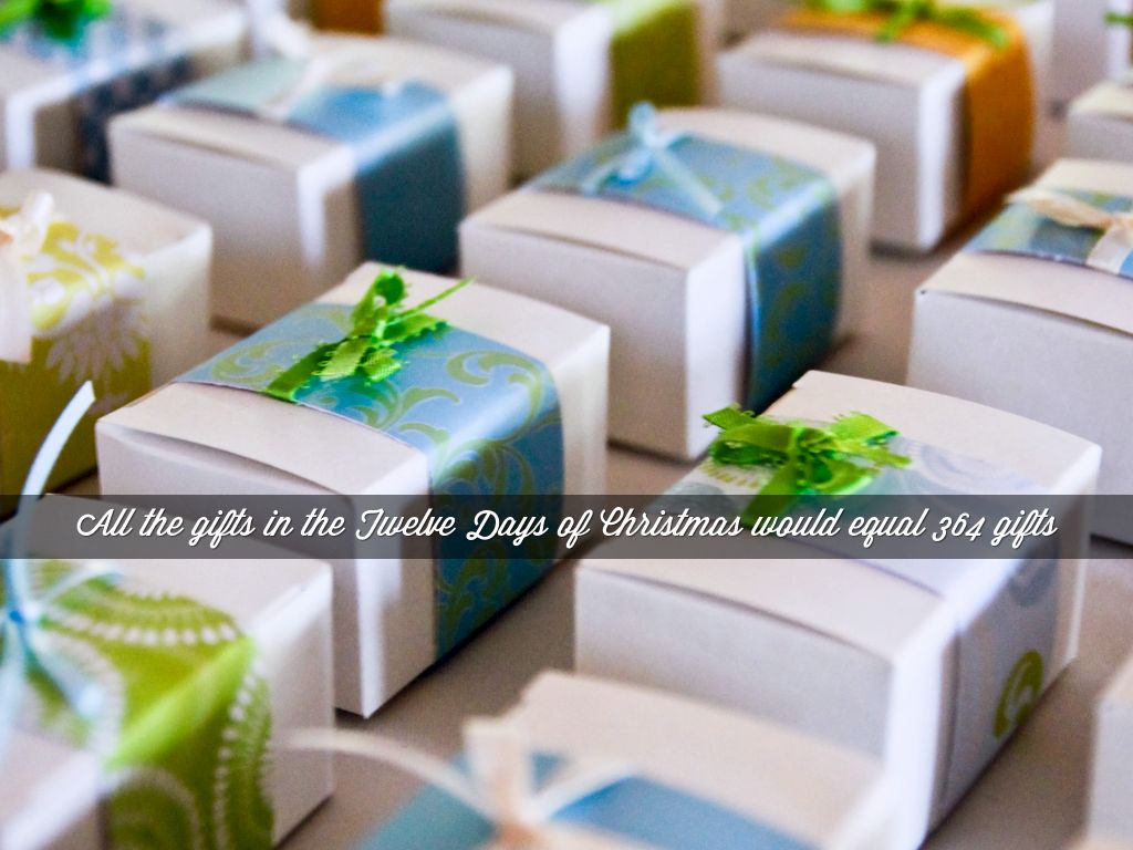 All the gifts in the Twelve Days of Christmas would equal 364 gifts