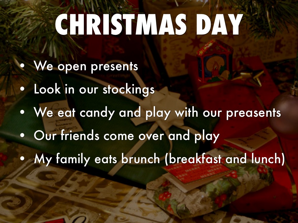We eat candy and play with our preasents